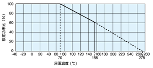 在環(huán)境溫度70°C以上使用時,應(yīng)按照左圖負(fù)荷特性曲線,減小額定功率。